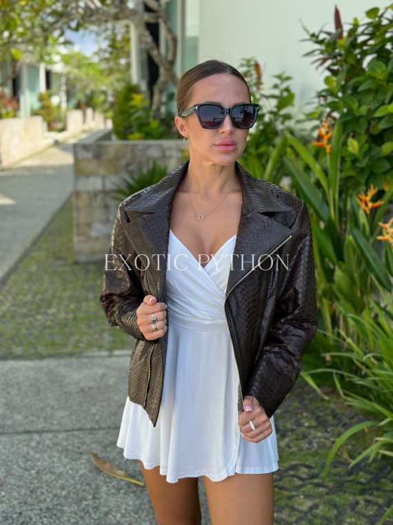Discover a world of luxury and style with our genuine python leather jacket in a brown shade. The women's python leather jacket is an exquisite closet item that will become an important element of your image, giving it elegance and originality.